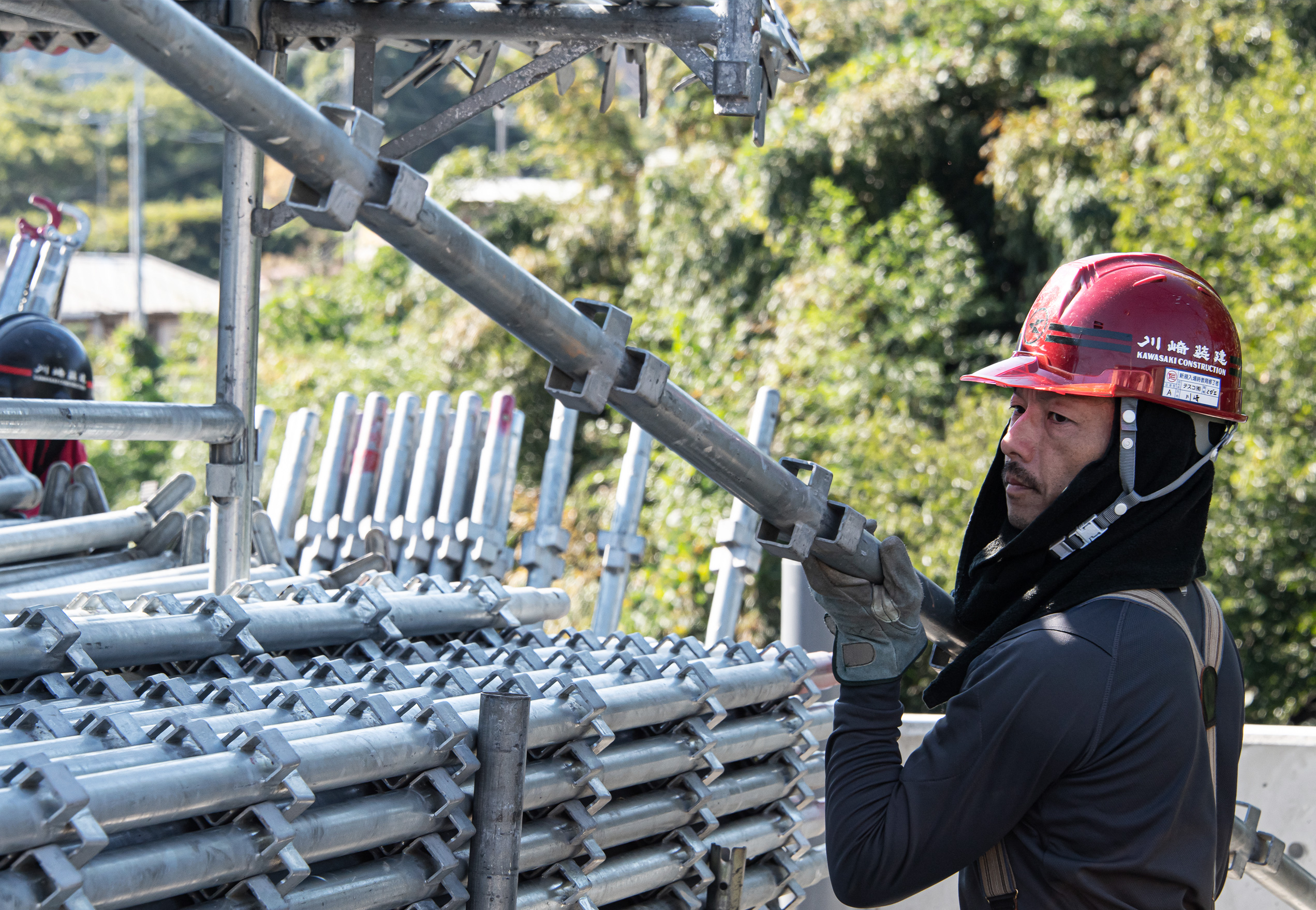 住宅の新築やリフォーム、公共物や社寺の建築など、現場は多岐にわたりますが、建築現場にとって、足場を組み、解体する私たちは1番最初に入って1番最後に出る存在。だからこそ、現場の美しさや安全面、そして近隣の方への挨拶に至るまでトータルな配慮が必須です。