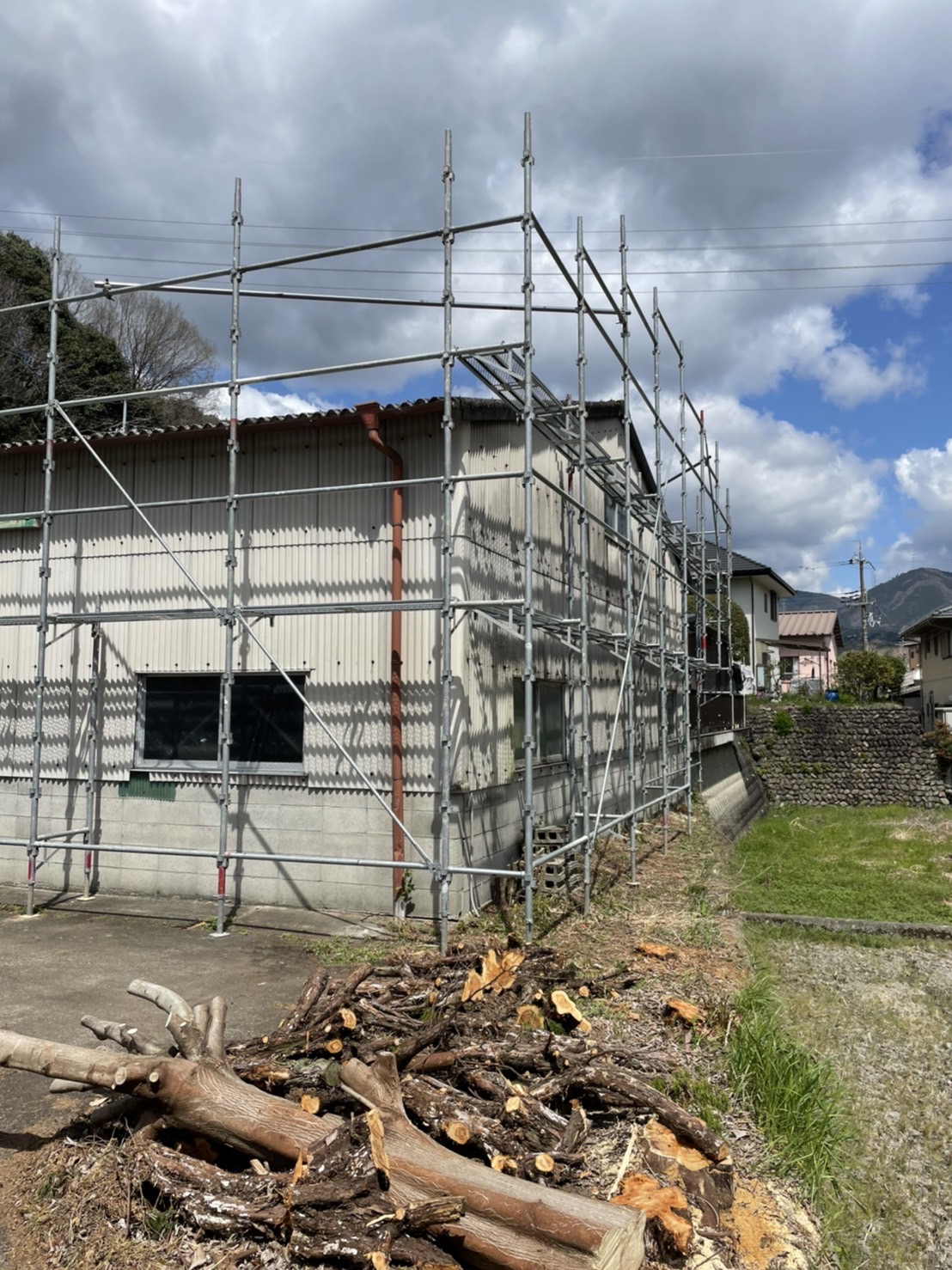 大阪府河内長野市のO様邸の足場の施工状況になっております。 宜しくお願い致します。