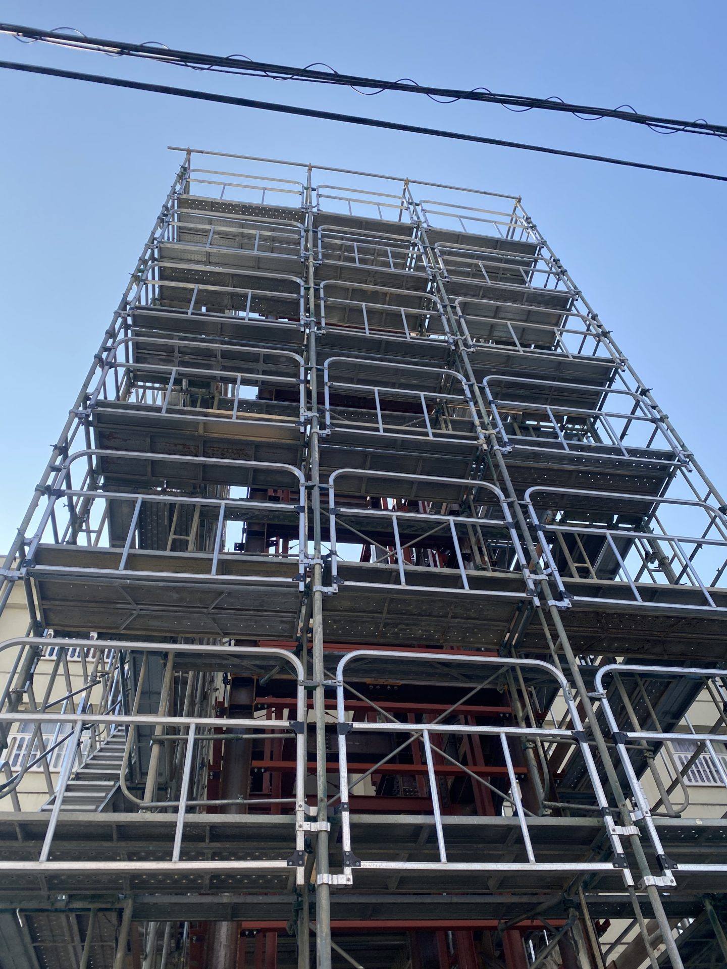 大正区の某市営団地のエレベーターの新設工事の足場の施工状況になります。 あと落下養生の朝顔とメッシュシートを貼って外部は終わりになります。 終盤にさしかかっておりますが気を抜かずに頑張って行きましょう。 宜しくお願い致します。