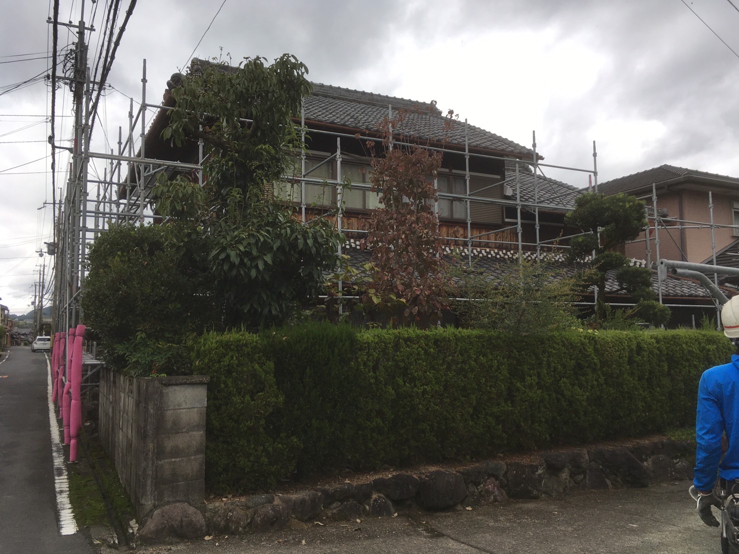 和歌山県九度山町のN様邸の屋根補修工事の為に足場の施工をさせて頂きました。 隣の道には足場を出せないので足場を加工して施工を致しました。 今日は朝から雨が降っていたので段取り重視でスムーズに作業を行い早めに仕事も終われたので良かったです。 明日も色々現場が御座いますが頑張って行きましょう。 宜しくお願い致します。