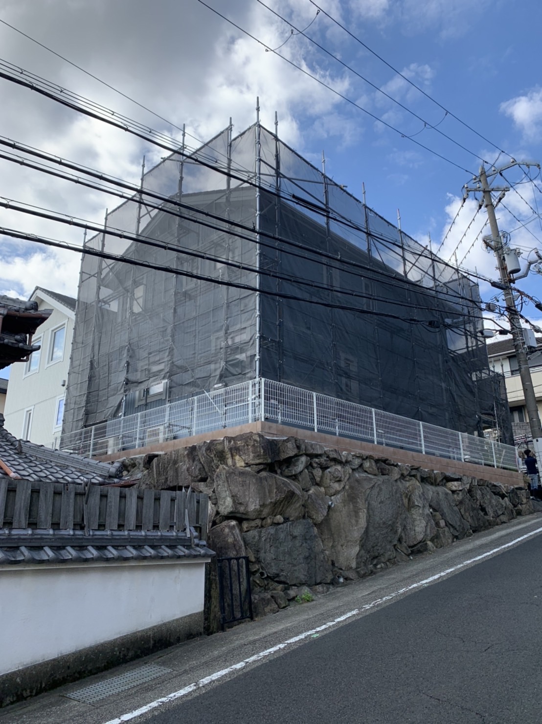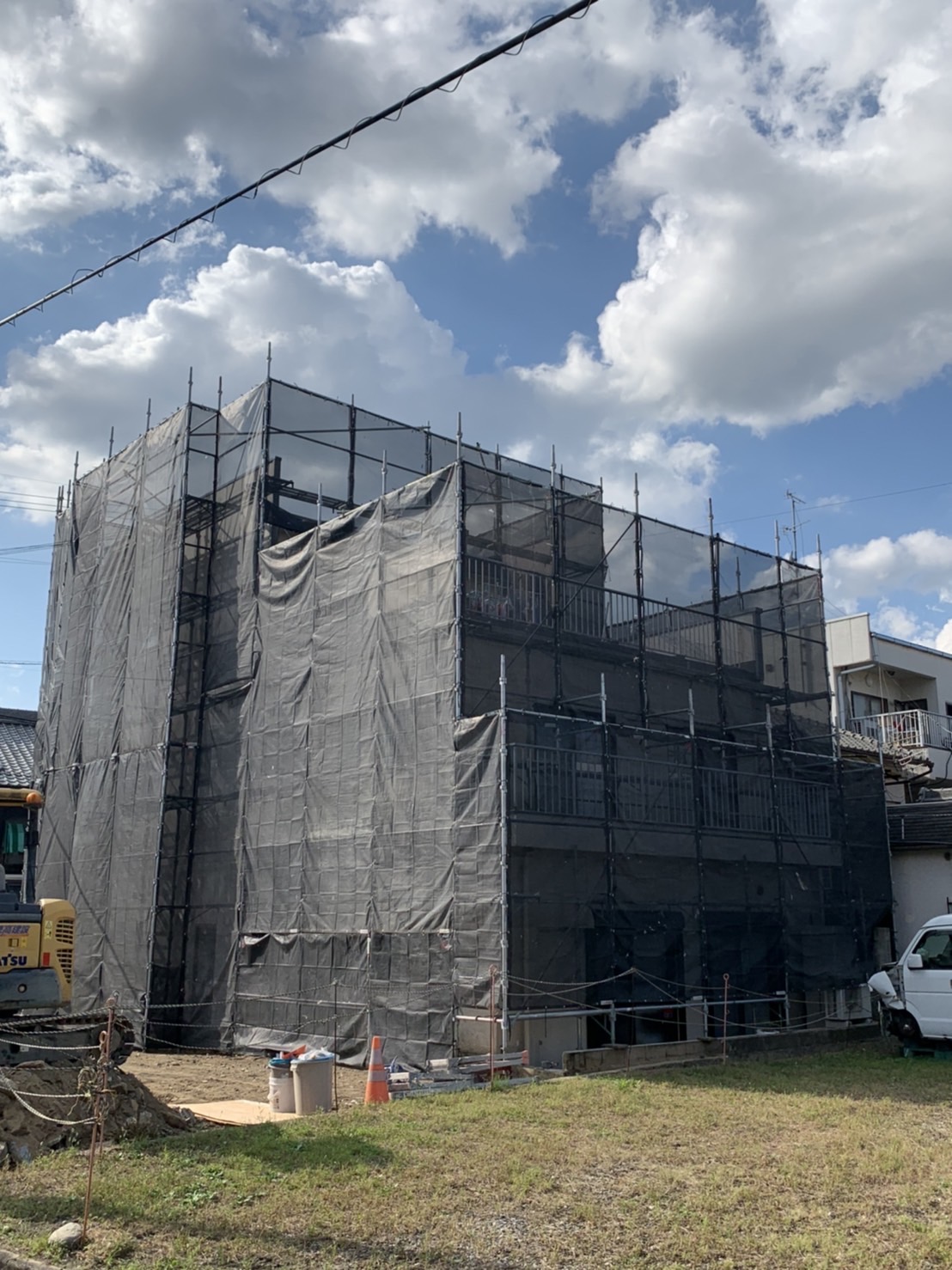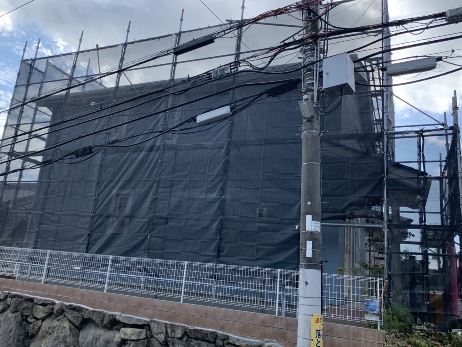 大阪府富田林市のH様邸の外壁改修工事の為に足場の施工をさせて頂きました。 一般住宅だったのですが凄い豪邸だったので緊張しました。笑 屋根の葺替えも同時に致しますので屋根屋さんと塗装屋さんが仕事をし易い様に足場の施工を致しました。 明日は週末なので少し早めに終われる様に頑張りたいと思います。 宜しくお願い致します。